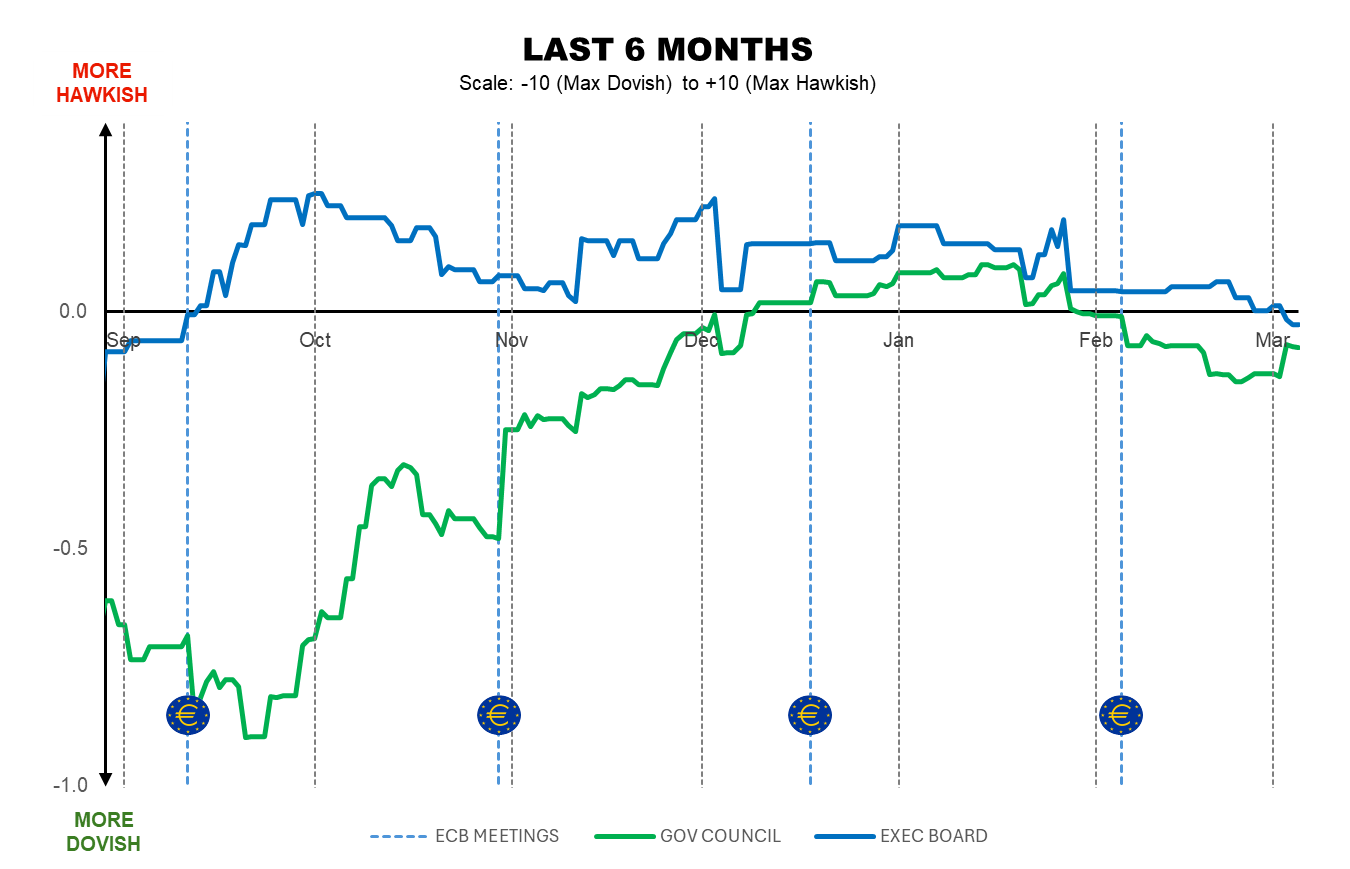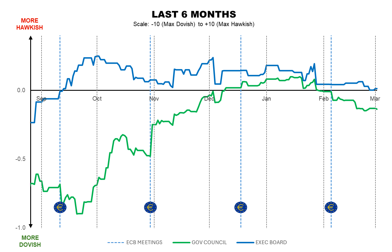 By Marta Vilar – MADRID (Econostream) – Econostream’s ECB Tone Meter showed the Governing Council unchanged this week, while the Executive Board edged down to neutral.