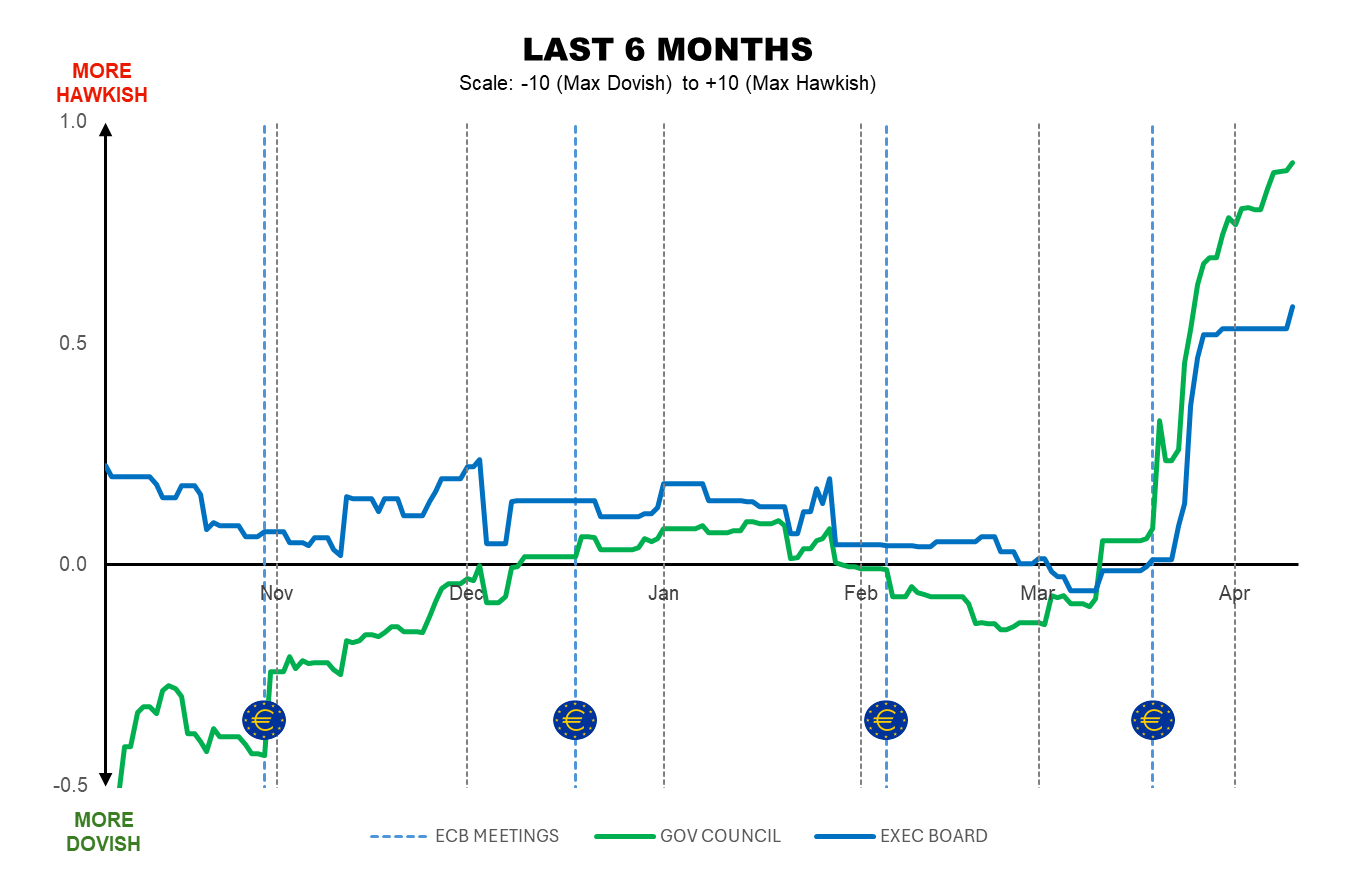 By Marta Vilar – MADRID (Econostream) – Econostream’s ECB Tone Meter continued to move slightly higher this week for both the Governing Council and the Executive Board, even in the wake of the Middle East ceasefire.