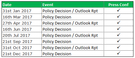 Here we summarise the calendar of forthcoming monetary policy meetings and decision of the Bank of Japan (BoJ)