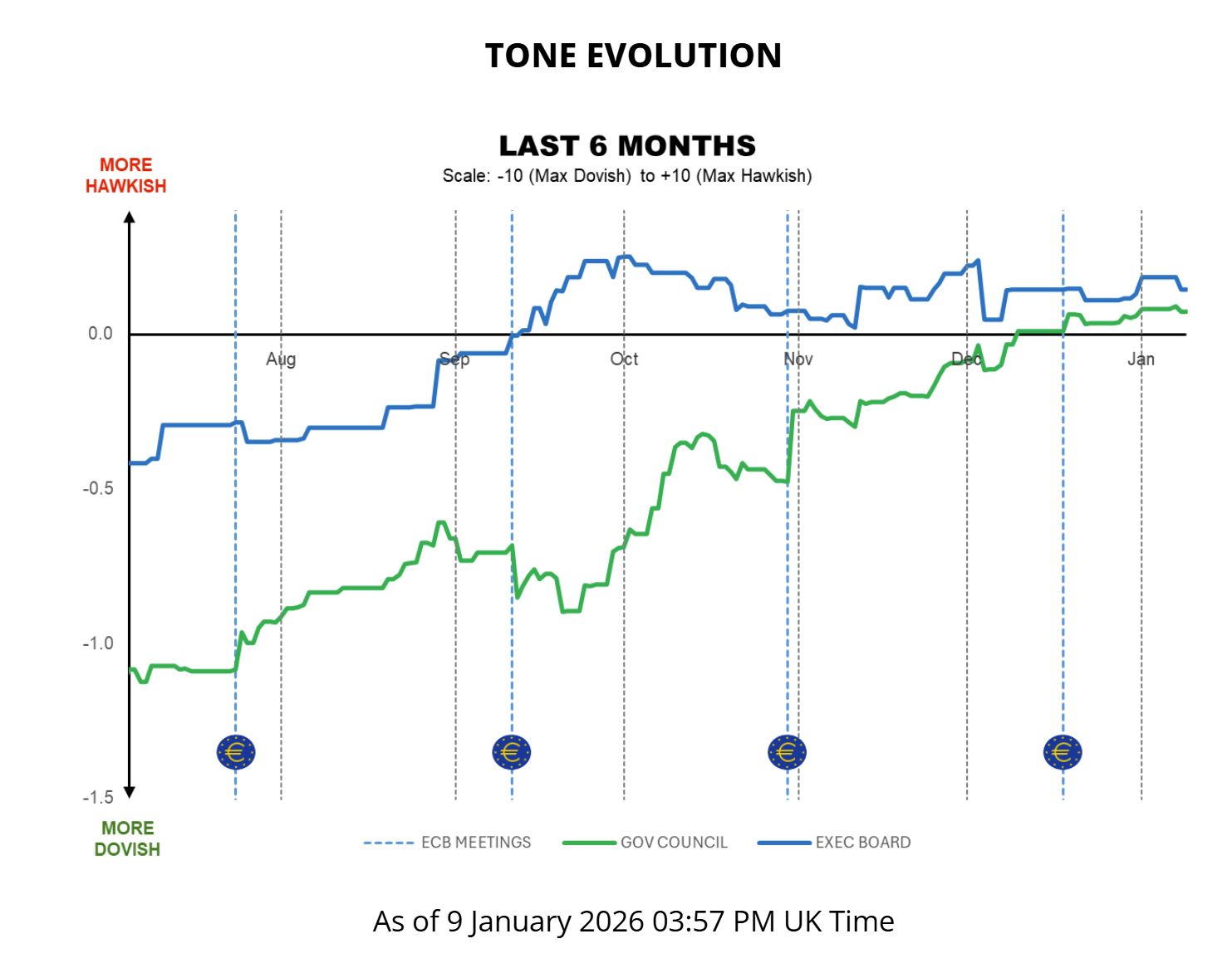 ECB Tone Meter Post-Holiday Update: Modest Hawkish Shift as One GC Member Repositions and Others Turn Firmer